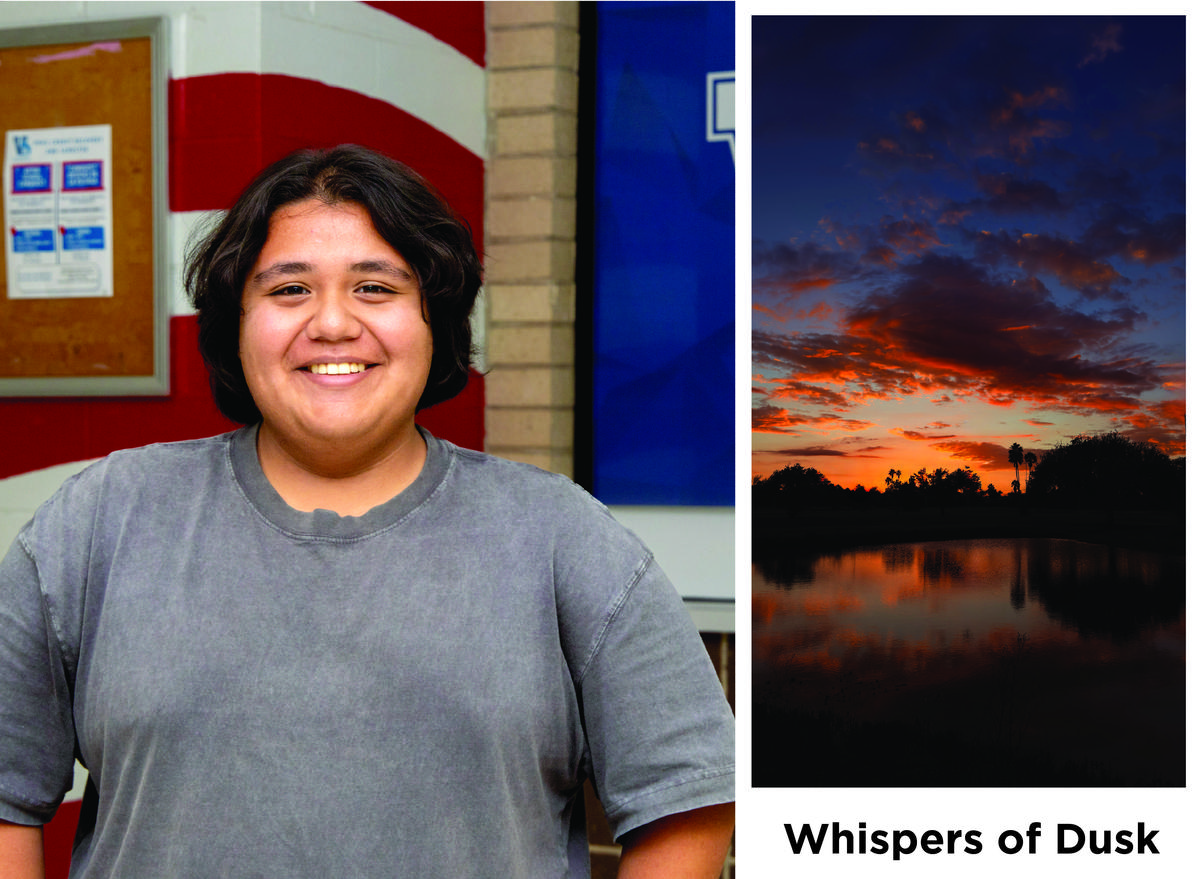 Samuel Garcia, a student at Veterans Memorial High School, earned statewide recognition for his artwork titled “Whispers of Dusk.” His piece will be displayed at the Bullock Texas State History Museum in Austin throughout the month of March in celebration of National Youth Art Month.